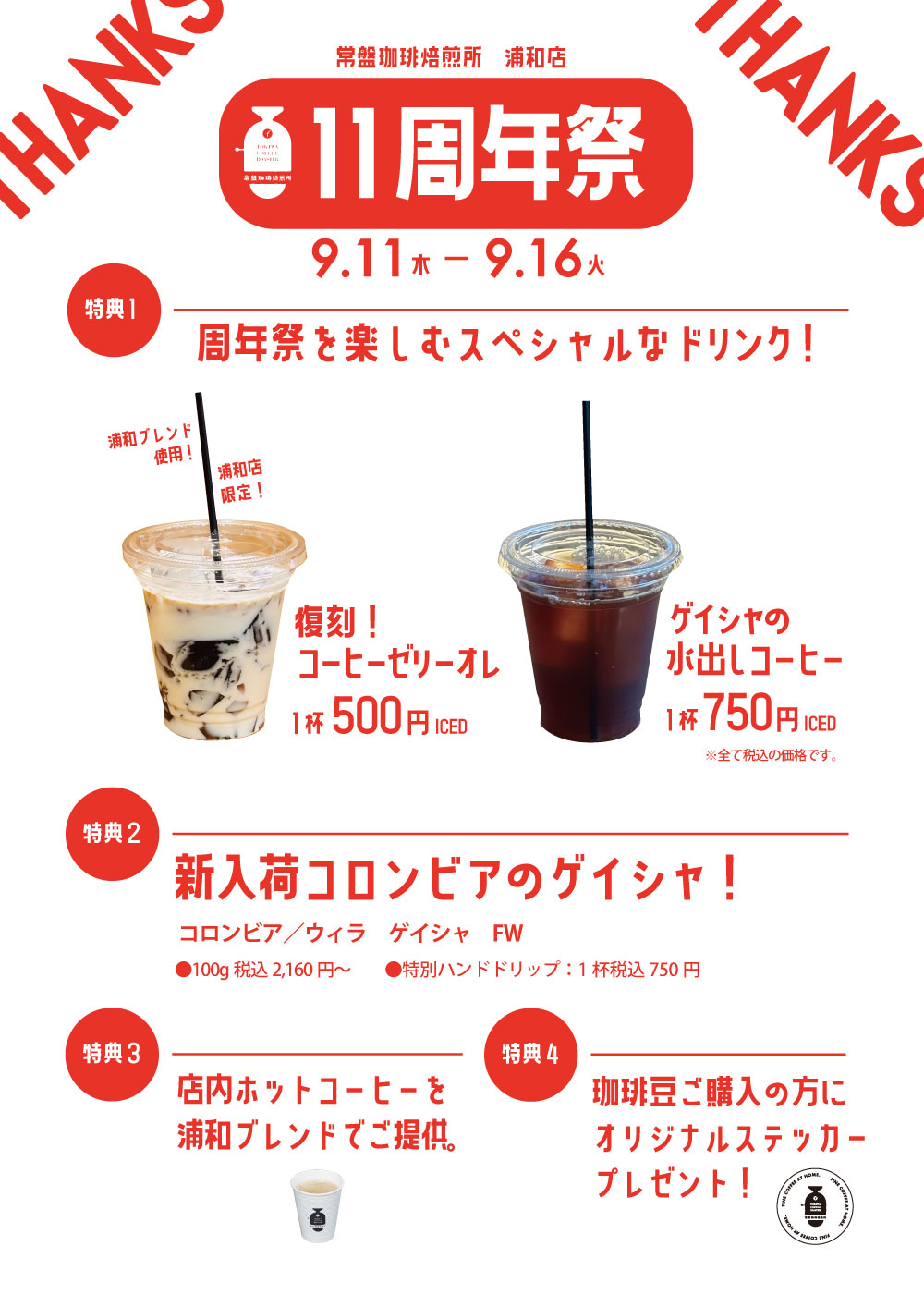 ④コーヒー豆ご購入の方にオリジナルステッカープレゼント!